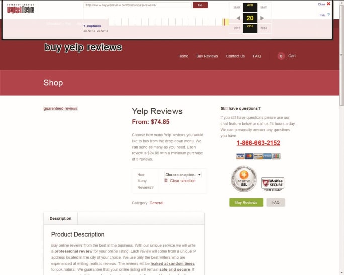 Yelp battles fraudulent activity on its site by initiating sting operations. If it sees a business trying to purchase reviews, a consumer alert pops up on the company’s page for 90 days. Since October 2012, 150+ companies have been flagged.