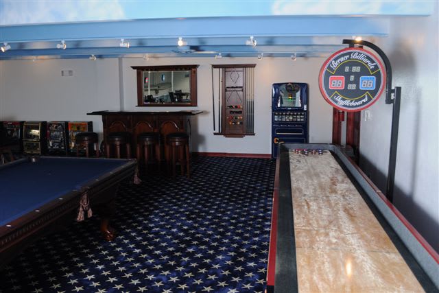 The Fuzys, who have been in retail for eight years, opened a new facility two years ago that looks like a miniature Caesar's Palace. The new building features clouded ceilings, which you can catch a glimpse of in this photo of the customer game room that's stocked with a pool table, shuffle board, big-screen TV and couches, among other eye-catching toys and decor.