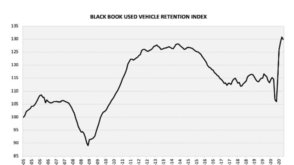 Black Book’s Used Vehicle Retention Index registered at 113.6 in April, 1.4% higher than it was a year ago but 0.2% lower than in March.